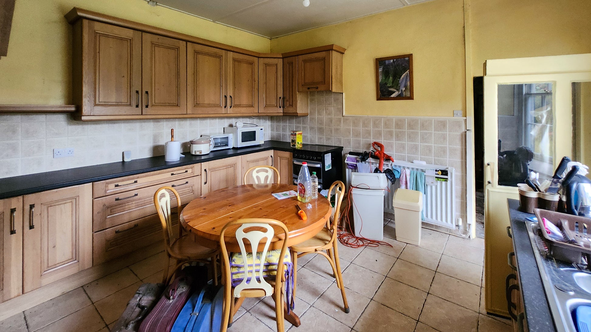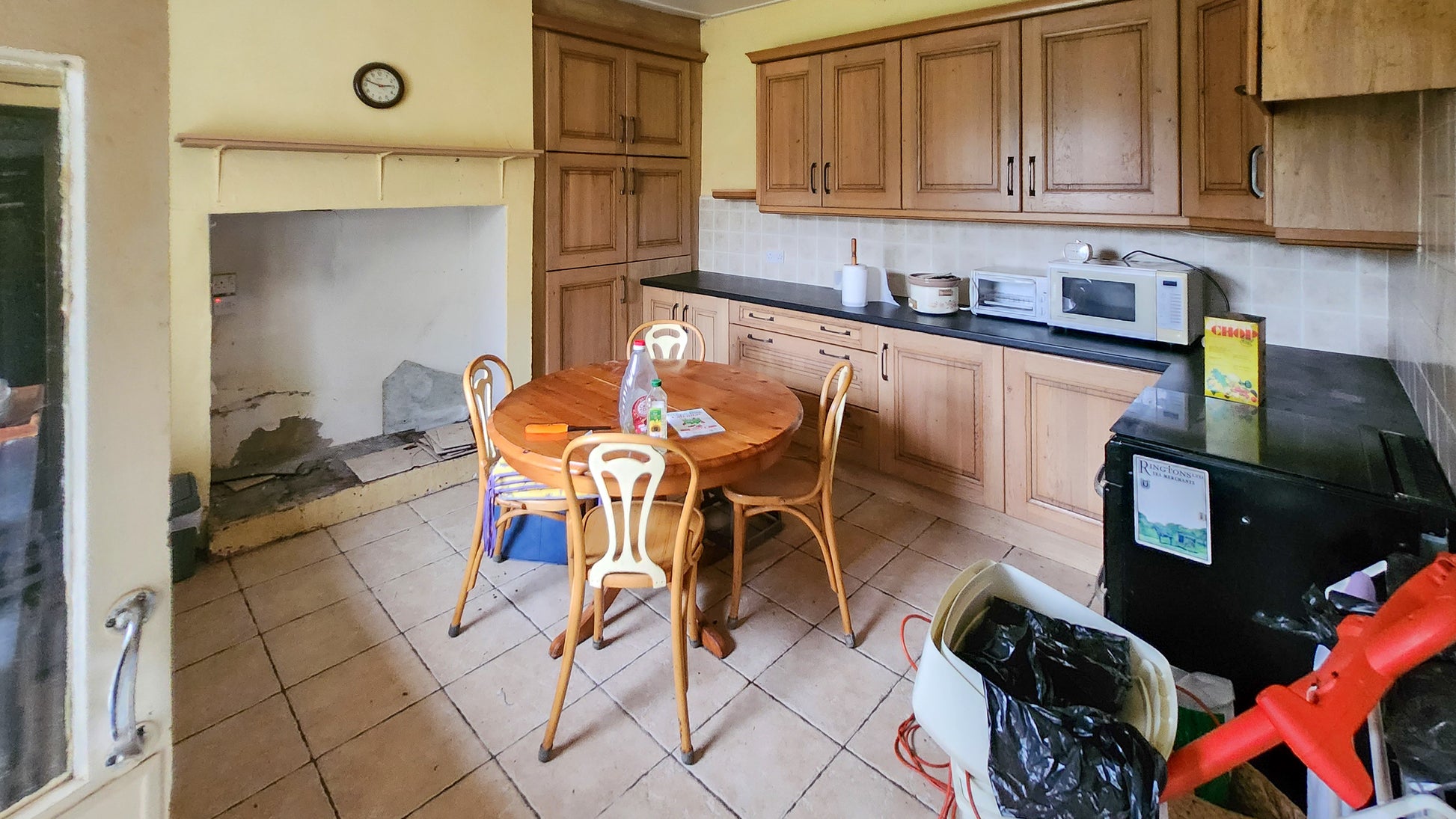 Spacious kitchen area to the rear with open loft access above – ideal for storage or future conversion (subject to planning)