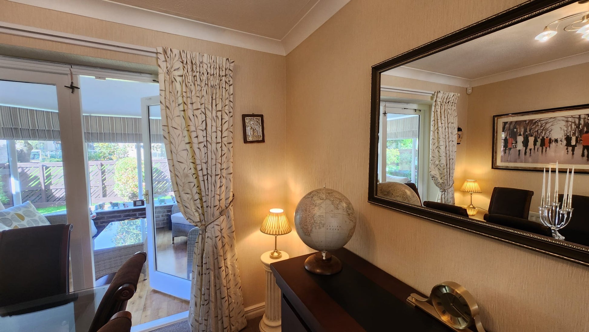 The bungalow offers three well-proportioned bedrooms, each thoughtfully designed with built-in wardrobes and elegant dƩcor. The main bedroom enjoys fitted furniture and a calm, neutral colour scheme. The second double bedroom mirrors this sense of comfort and quality, while the third bedroom (currently used flexibly) could make an ideal home office, craft room, or guest space.