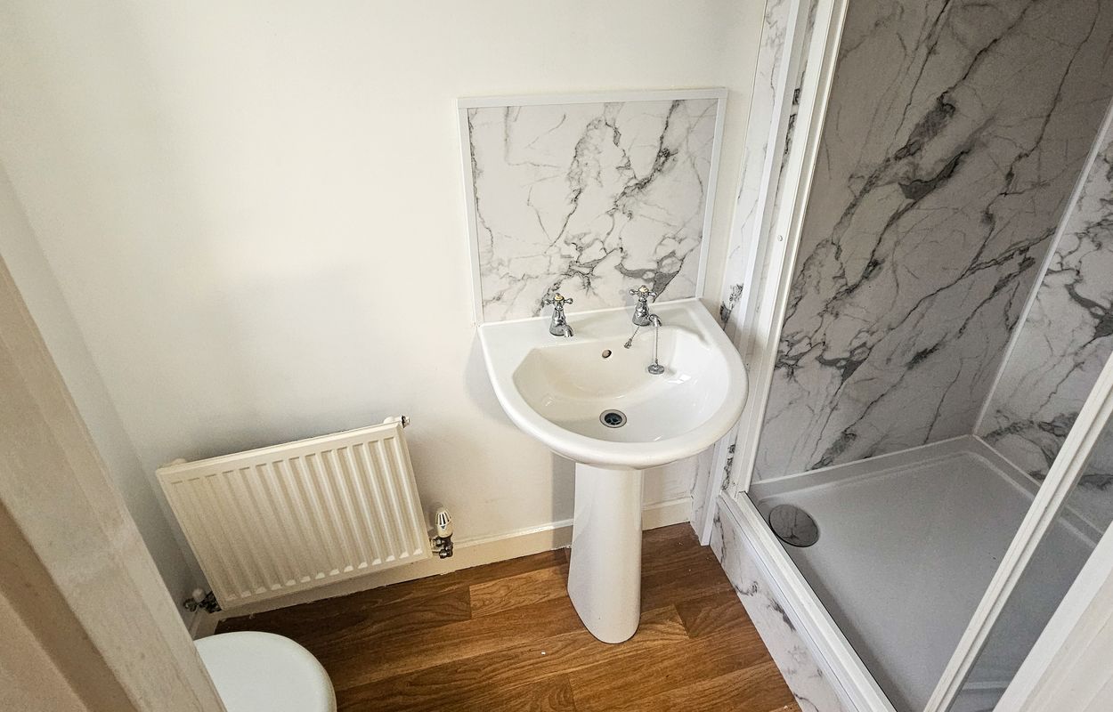 The property boasts two stylish bathrooms with luxurious marble-effect tiling, one with a contemporary shower and another with a curved modern bath-tub and glass shower screen. Wooden flooring throughout select areas adds warmth and elegance, while neutral decor and modern finishes create a versatile backdrop ready for personalisation. Ample storage solutions, radiator heating, and a practical storage shed in the private garden further enhance functionality. This home is perfectly suited for those seeking modern style, comfort, and outdoor space in a beautifully presented setting.